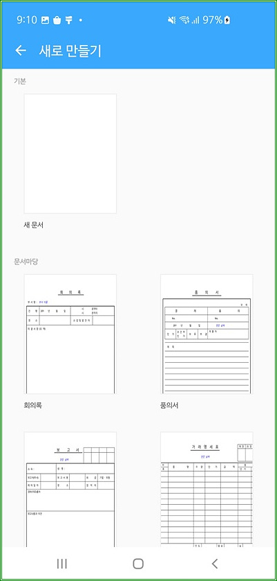 .hwp 파일을 새로 생성 시도하면 문서마당이 뜬다.